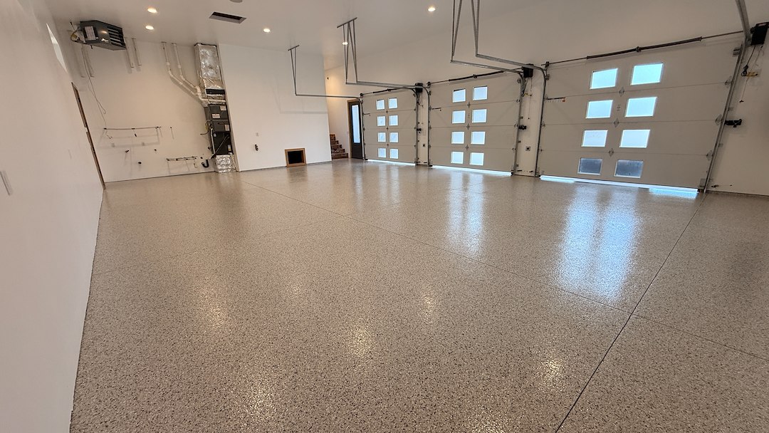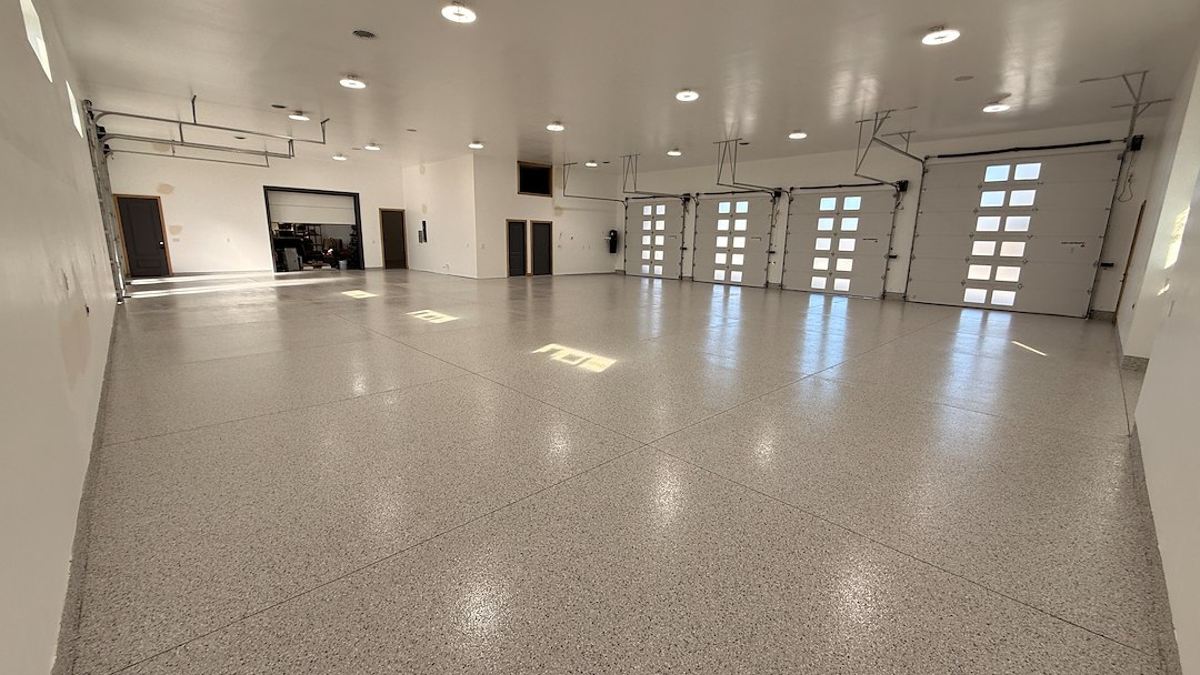 This custom home in Caldwell, Idaho featured an impressive 4,800 square foot oversized garage and shop designed for RV storage, vehicles, equipment, and workspace. While the home itself was beautifully finished, the bare concrete floors didn’t reflect the same level of craftsmanship.