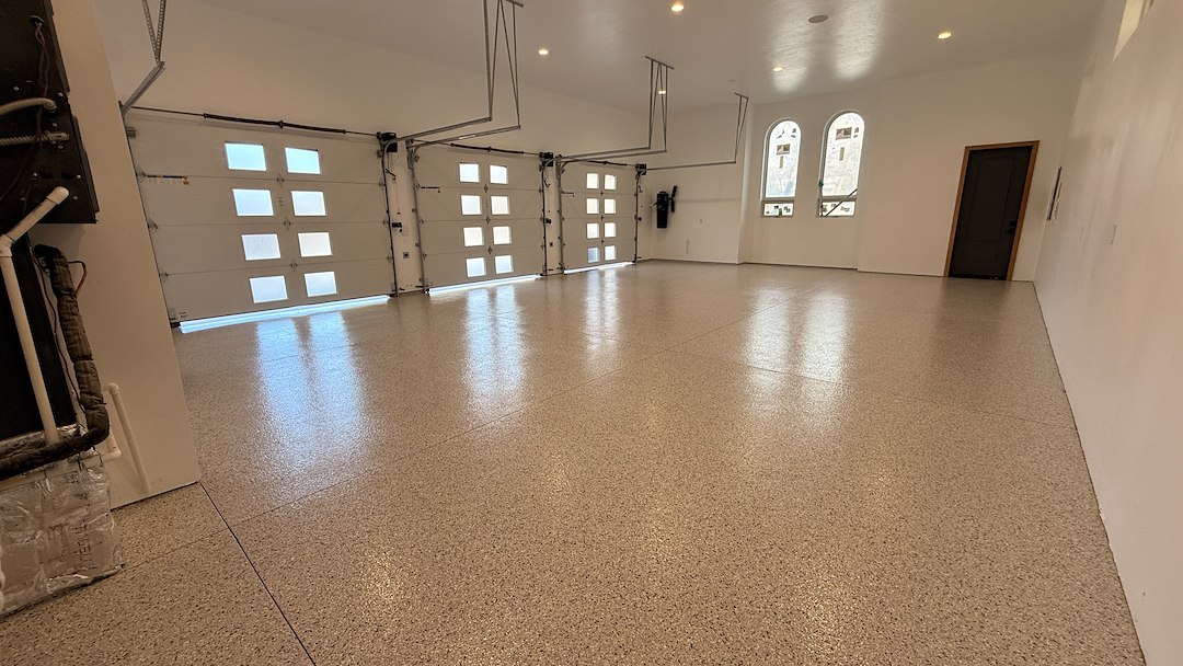 For large custom garages and shops, a full flake system provides both performance and aesthetics.