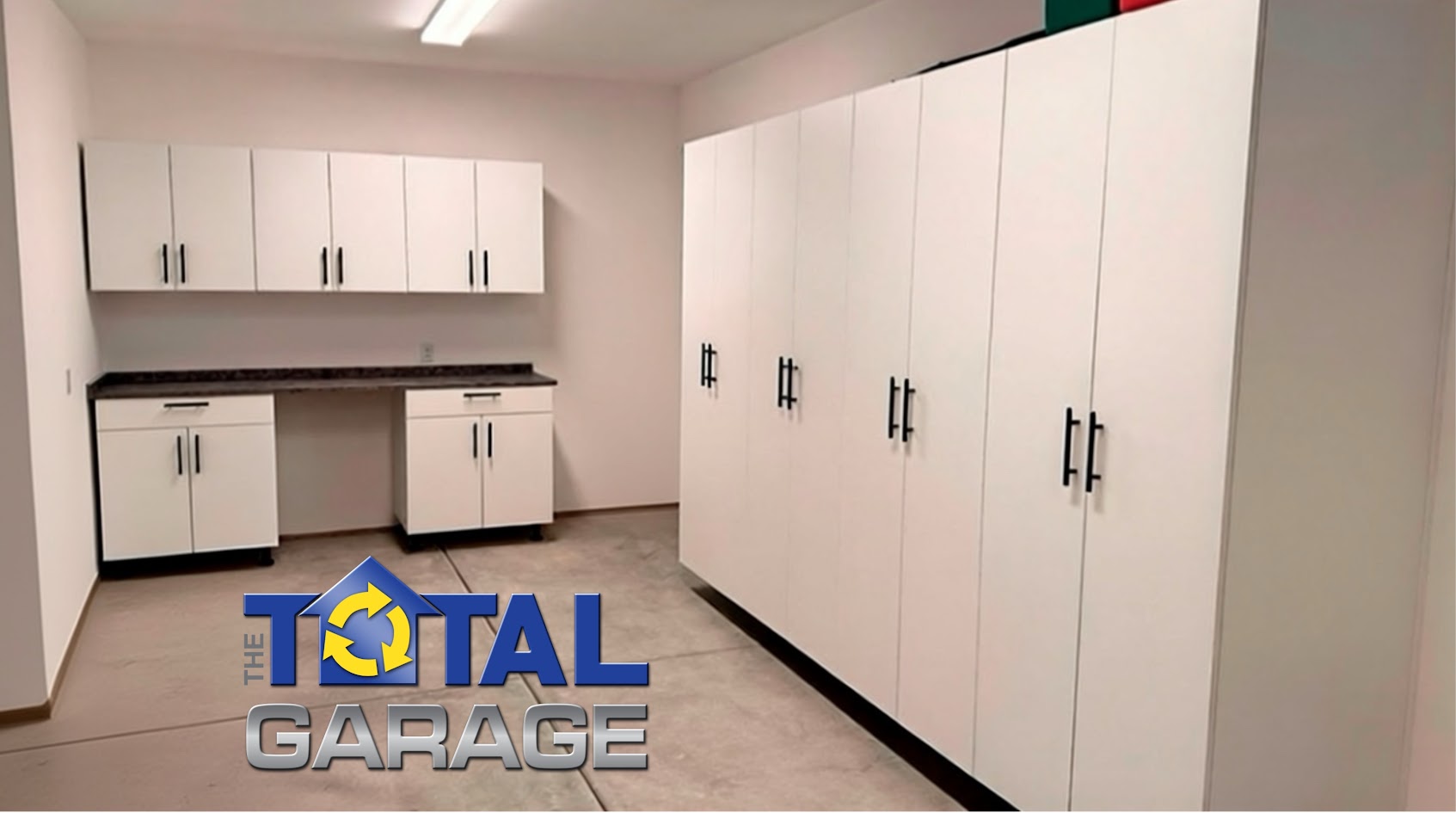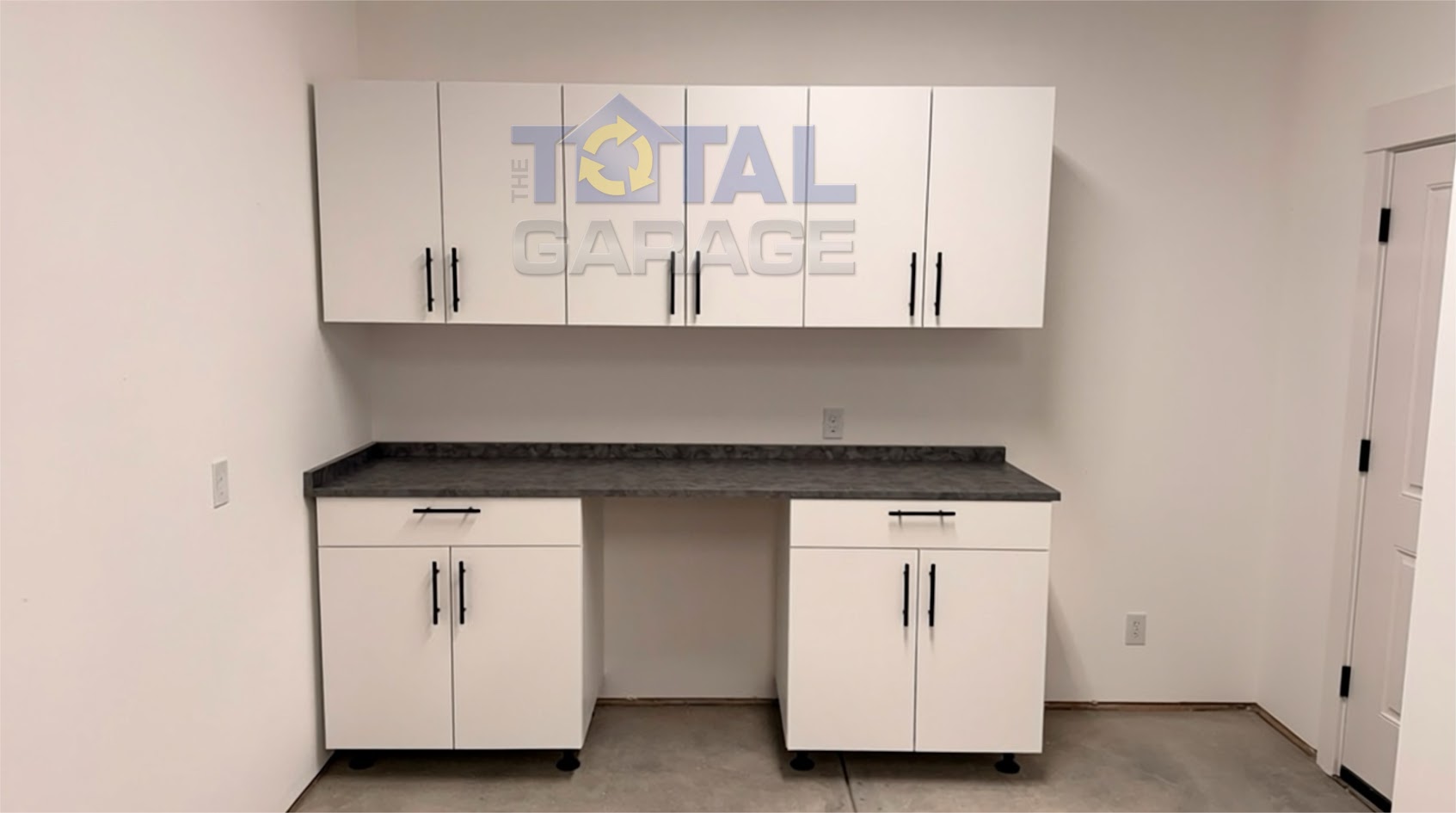 All cabinets were professionally measured, delivered, and installed by The Total Garage, ensuring precise fit, clean lines, and long-term durability. The white cabinetry paired with black hardware delivers a modern, timeless look that complements the garage space while adding long-term value to the home.