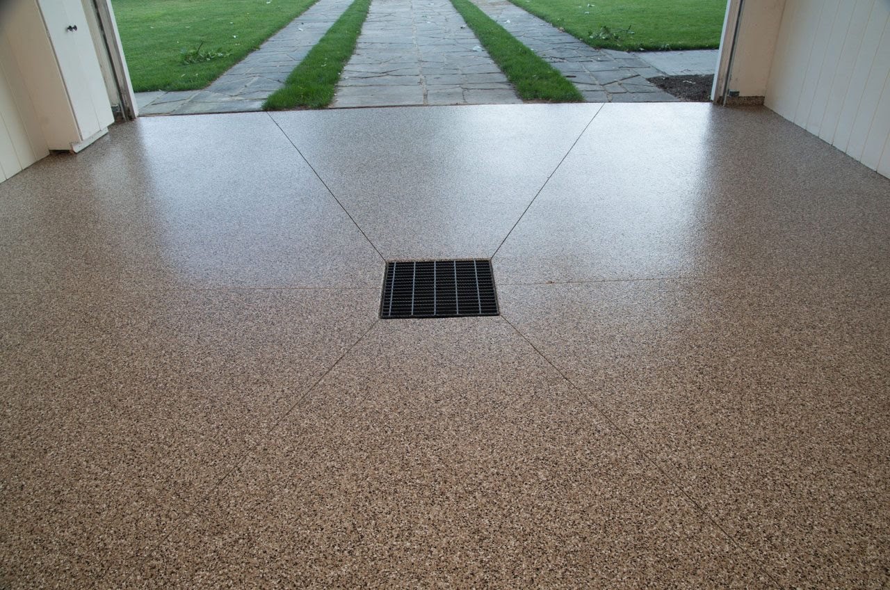 Careful detailing around the built-in garage drain to ensure smooth drainage
