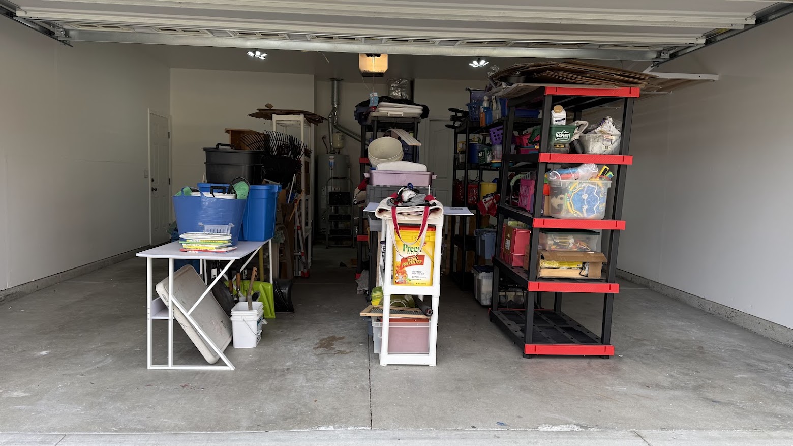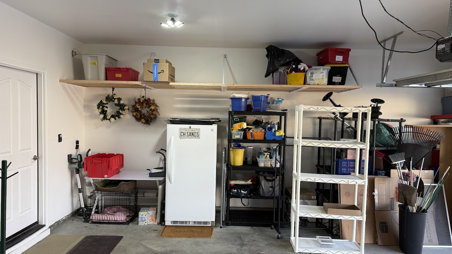 The new paint brightens the entire space, and the HD garage shelving provides organized, high-capacity storage for holiday bins, tools, cleaning supplies, and everyday items. This combination instantly makes the garage feel cleaner, larger, and more functional.