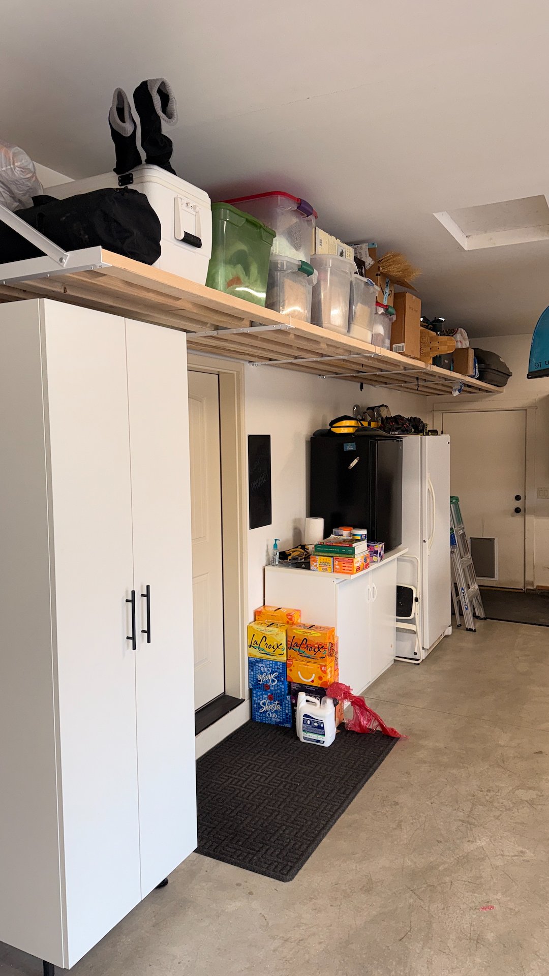 These shelves give the homeowner easy access while keeping everything off the ground.