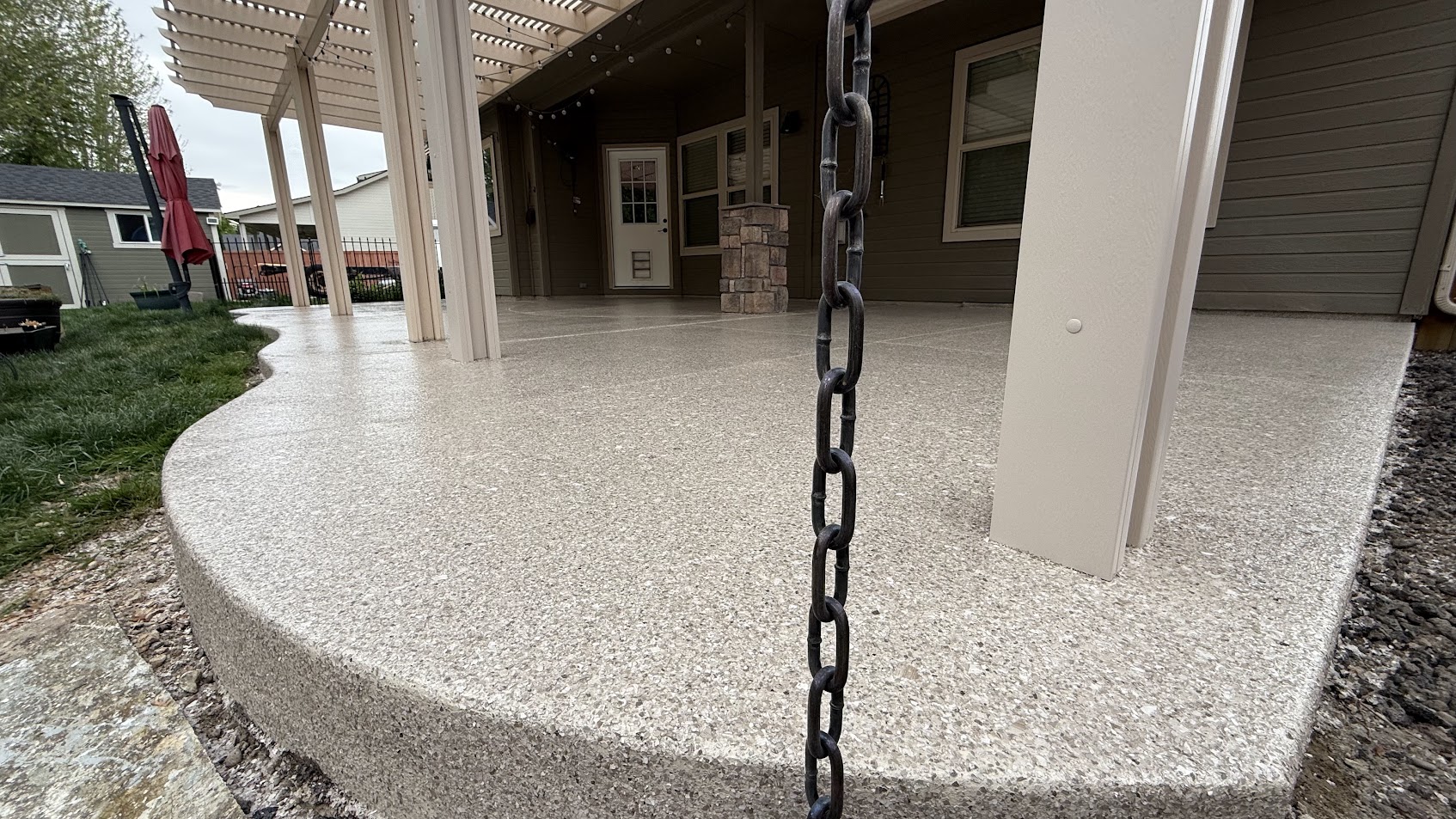 Complete Patio Transformation with “Tiki Brown” Epoxy and Polyaspartic Flooring