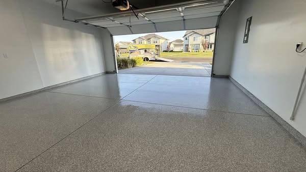Star, ID – The Total Garage recently installed our high-performance epoxy and polyaspartic flooring system in the Stoney Creek blend, a choice that showcases the distinct advantages of each material. Epoxy provides a tough, durable base layer that stands up to heavy foot traffic and harsh conditions. Polyaspartic, applied as the topcoat, offers rapid curing and superior UV stability—preventing yellowing and extending the life of the floor.